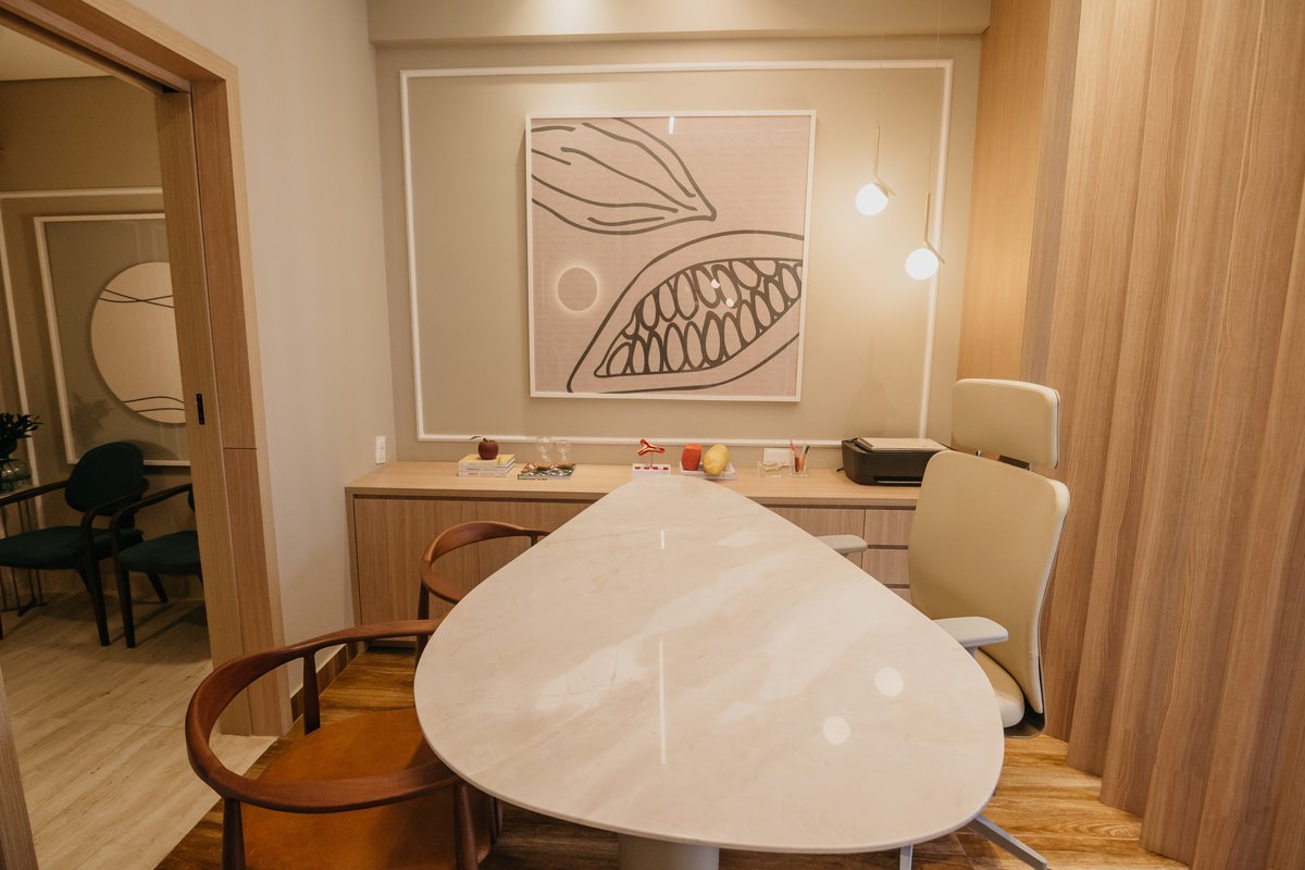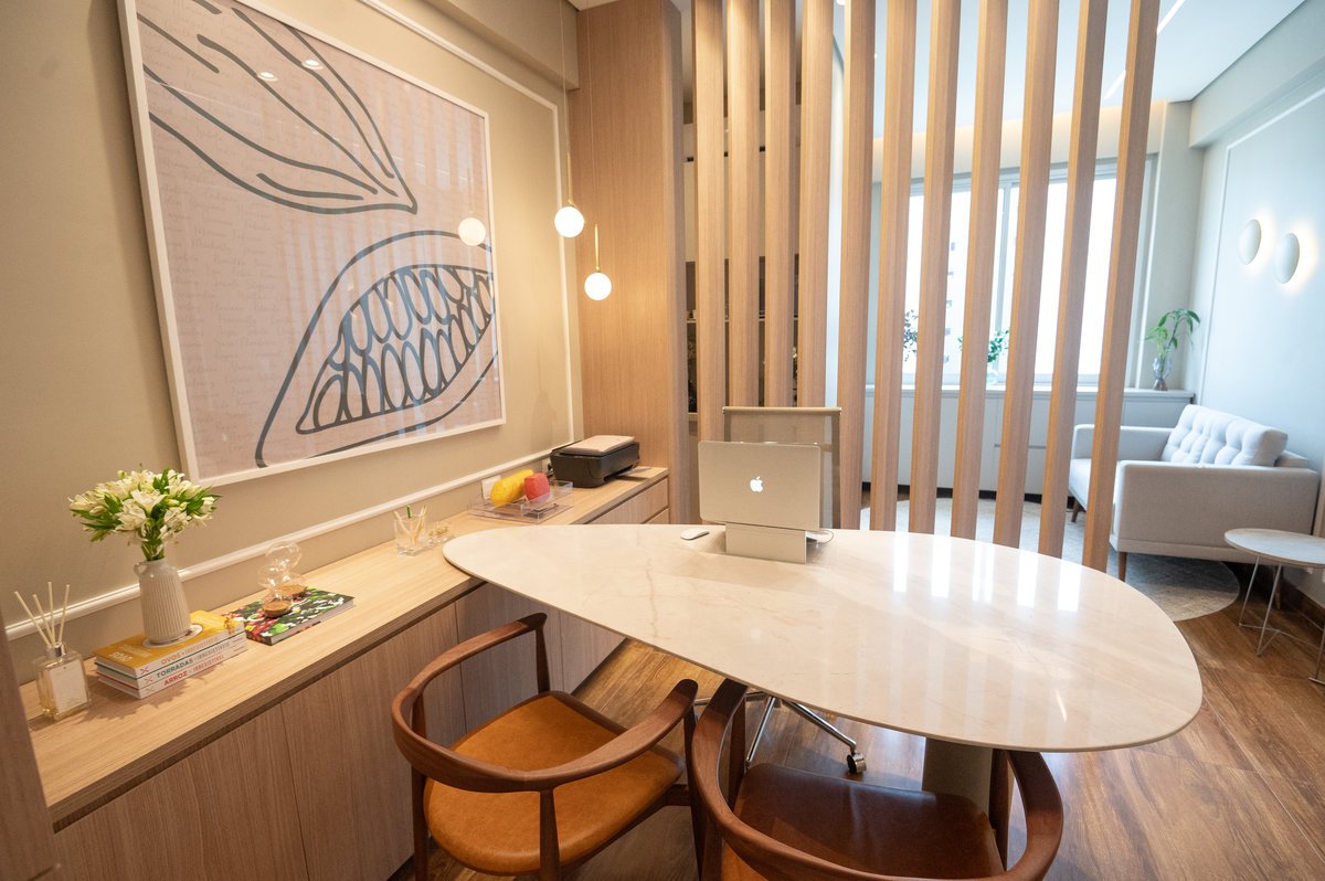 Este projeto reflete a busca pela harmonia entre estética e funcionalidade, criando um consultório que não apenas valoriza a marca da nossa cliente, mas também proporciona uma experiência única e acolhedora para seus pacientes. O resultado é um espaço que, além de bonito, é prático, confortável e promove bem-estar desde o momento em que os pacientes entram!